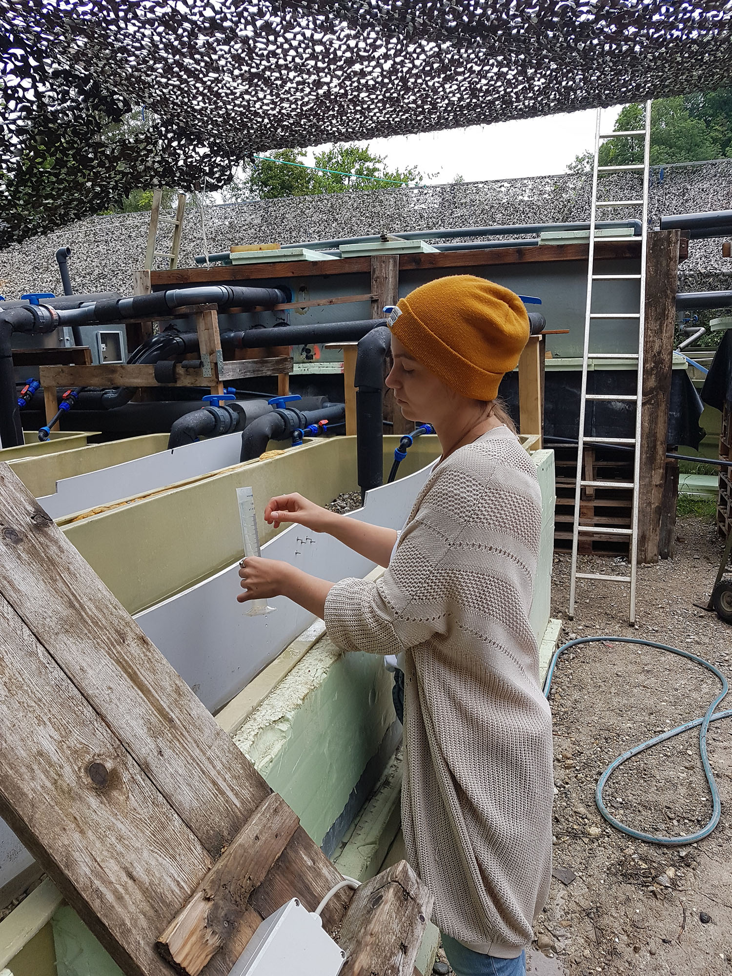 Das interdisziplinäre Fließrinnenexperiment in Freising – Kernstück für das mechanistische Verständnis verschiedener Stressoren – gestaltete sich aufwändig in Planung und Umsetzung. Seit Sommer 2020 wird hier kontrolliert und über realitätsnahe Zeiträume hinweg der Einfluss einzelner sowie kombinierter Stressoren analysiert. Ziel ist es zu verstehen, was erhöhte Temperaturen, Feinsedimenteintrag und geringere Fließgeschwindigkeiten für die Besiedelung durch Organismen und die Ei-Entwicklung von Fischen bedeuten, und wie sich dadurch biogeochemische Parameter verändern (TP1, TP2 und TP3).