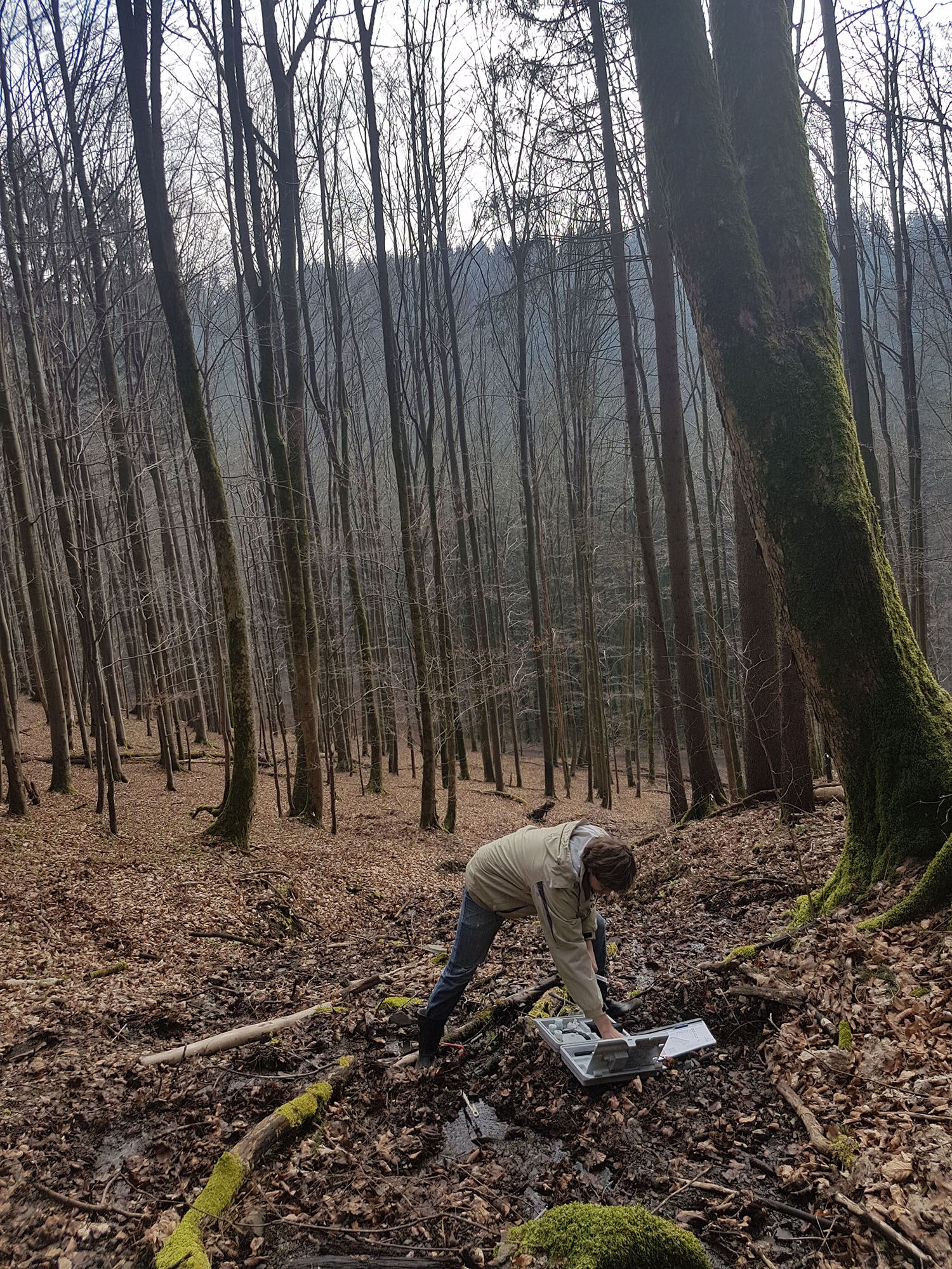 Hierbei bietet eine neue Messmethode der „stabilen Isotope“ des Sauerstoffs eine spannende Gelegenheit: Sie erlaubt es die Pfade des gelösten Sauerstoffs im Bach, Bachgrund und im Grundwasser zu bestimmen. Das hilft folgende Fragen zu beantworten: