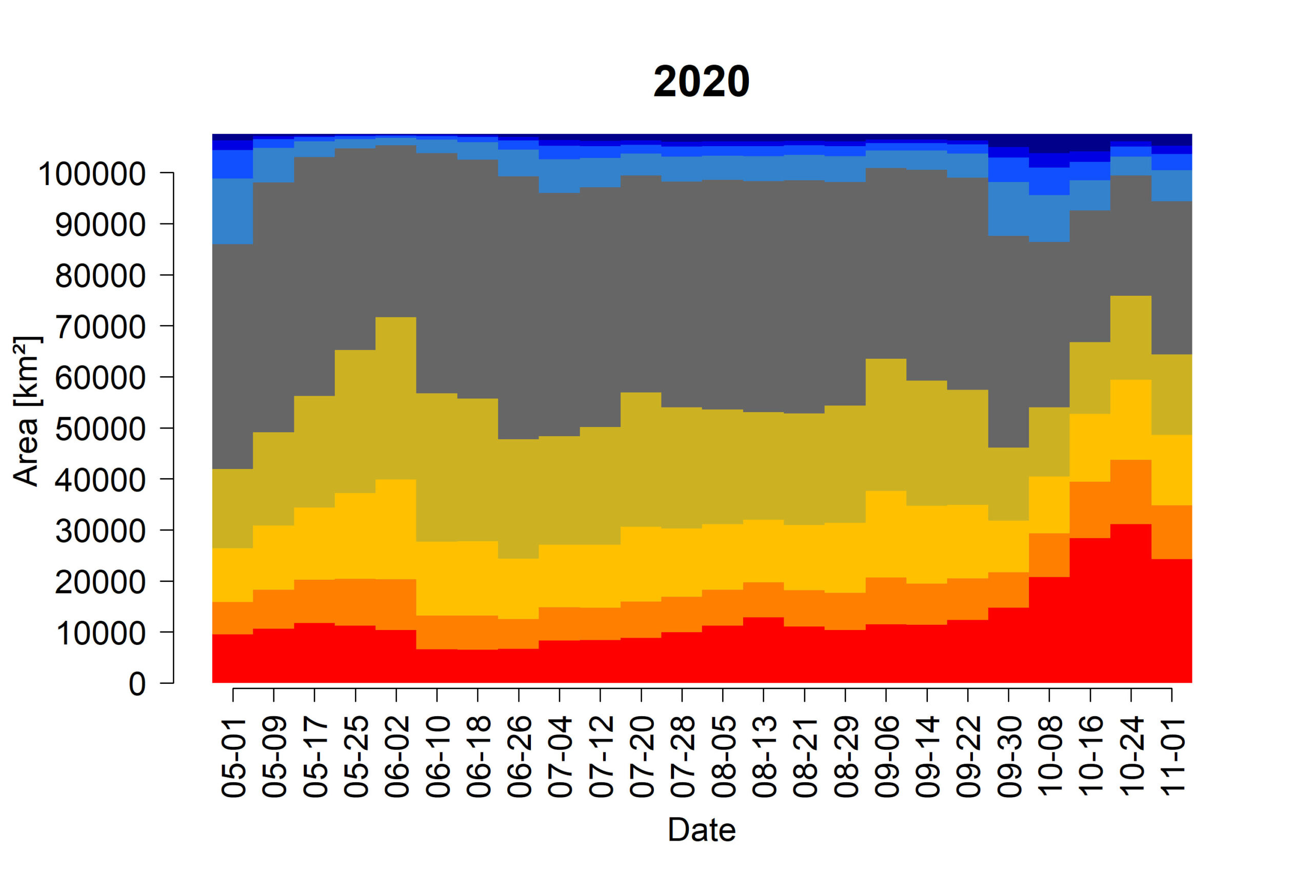To this end, remote sensing data is used to determine the greenness of the vegetation and to compare it with long-term observations with the help of quantiles and proportional deviations.