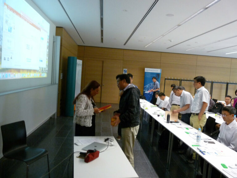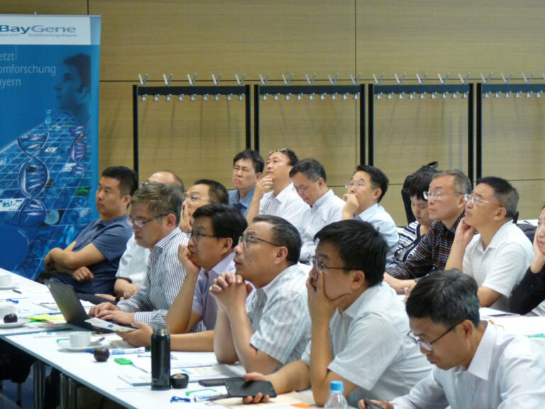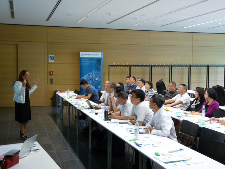 Focus of that visit was the international sponsorship of sciences, especially between China and Europe, but also on a federal level. Dr. Saskia Graf of the Bavarian Research Alliance (BayFOR) referred on that topic and answered many questions on it. BayFOR especially advises scientists to competitions on european research fields.
