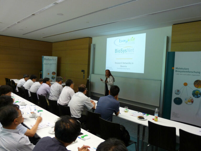 The managing director of bayklif, Dr. Ulrike Kaltenhauser, referred about the special advantages of the unique interdisciplinary research funding in Bavaria, through research networks that are funded on state level. Such research networks make it possible to answer complex and specific questions relevant to Bavaria that require consideration across disciplines, e.g. the direct local climate impacts on biodiversity. Furthermore, the successful history of promoting science in Bavaria, also on the basis of the offices advised by bayklif, BayGene, and BioSysNet was discussed. An important focus was to decide which factors make up a good science management and synergetic network.