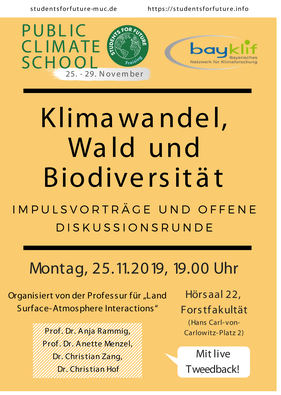 Climate change, forests and biodiversity – keynote speeches at the Faculty of Forestry in Freising 25.11.2019