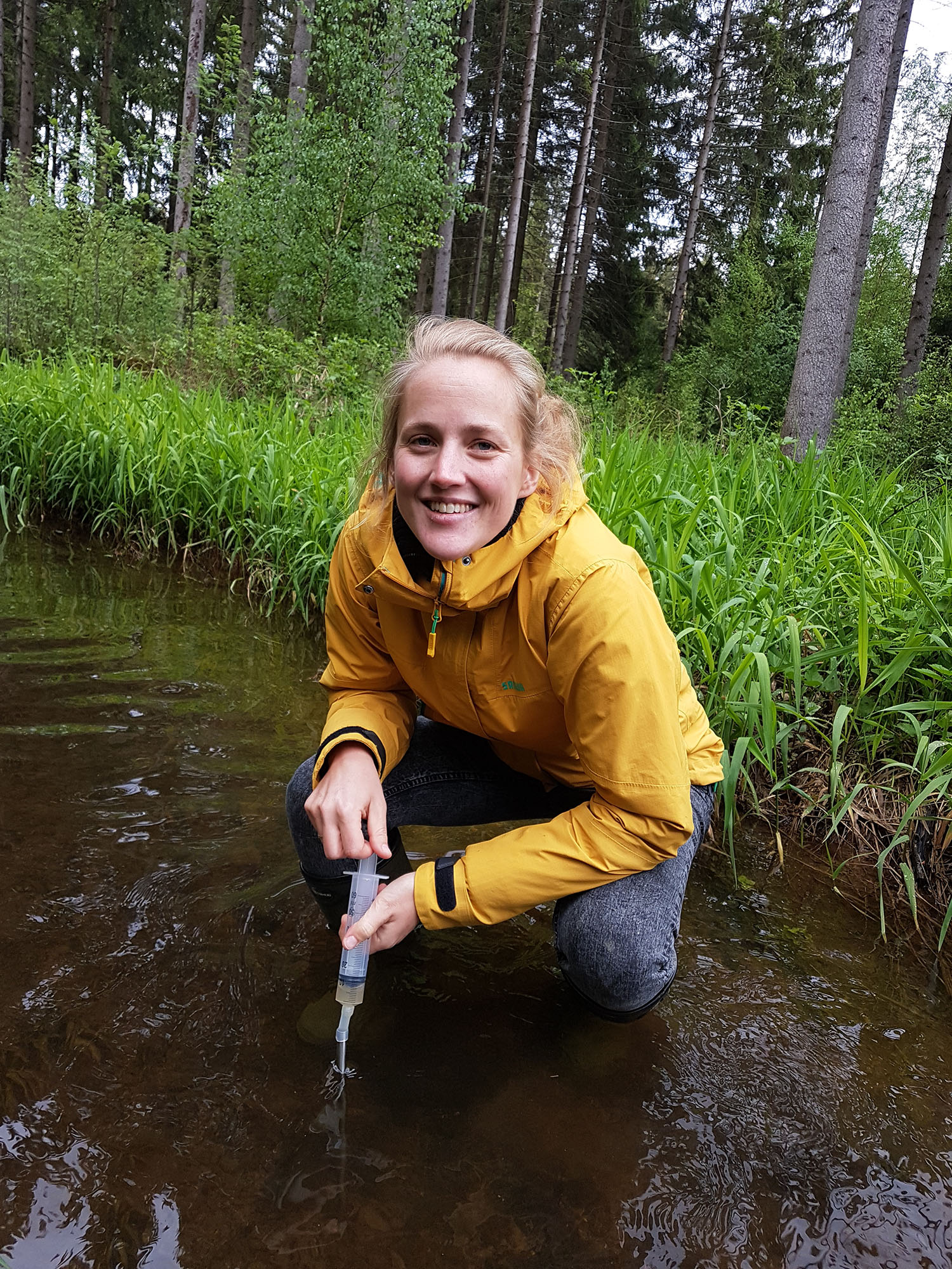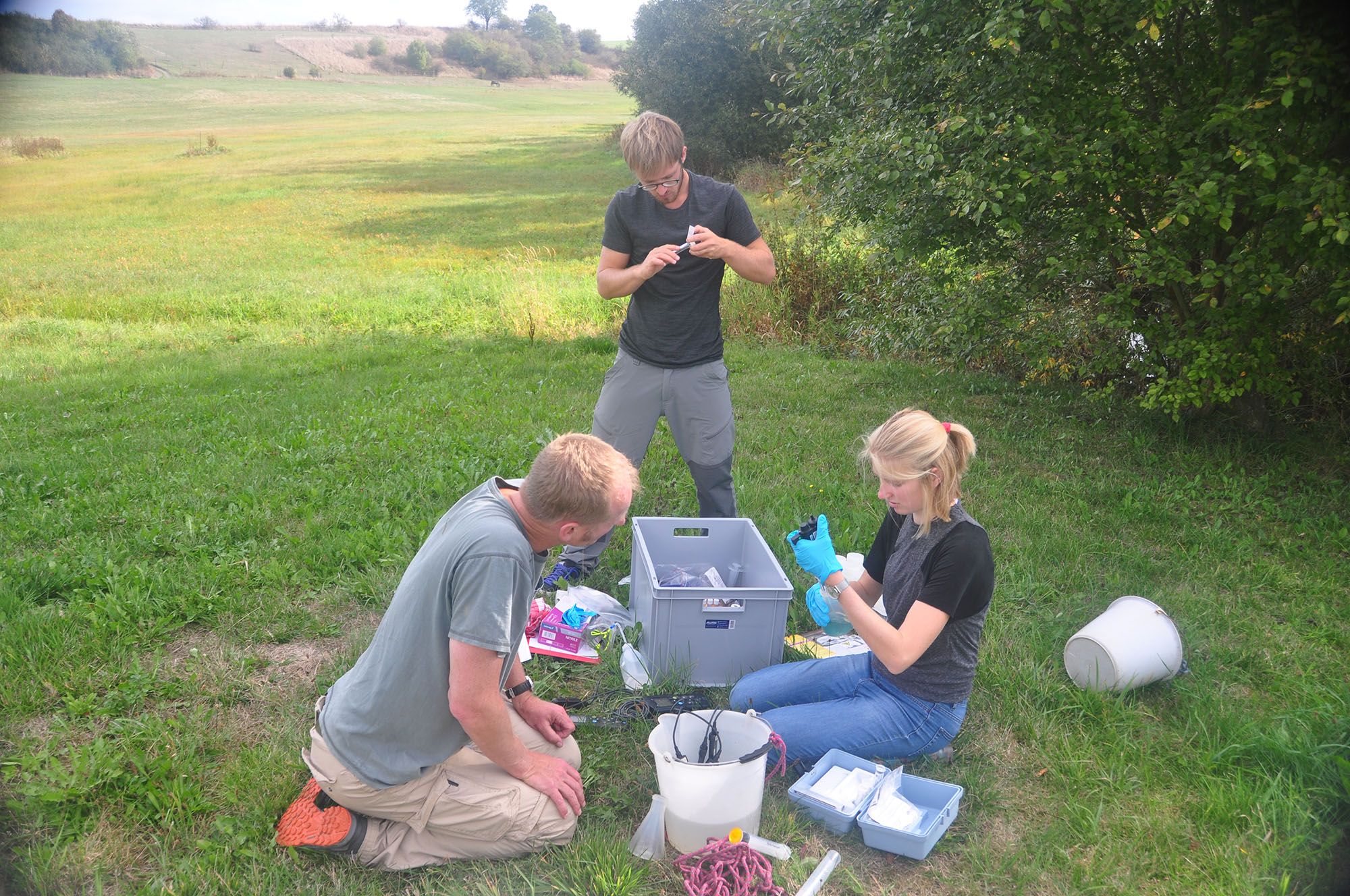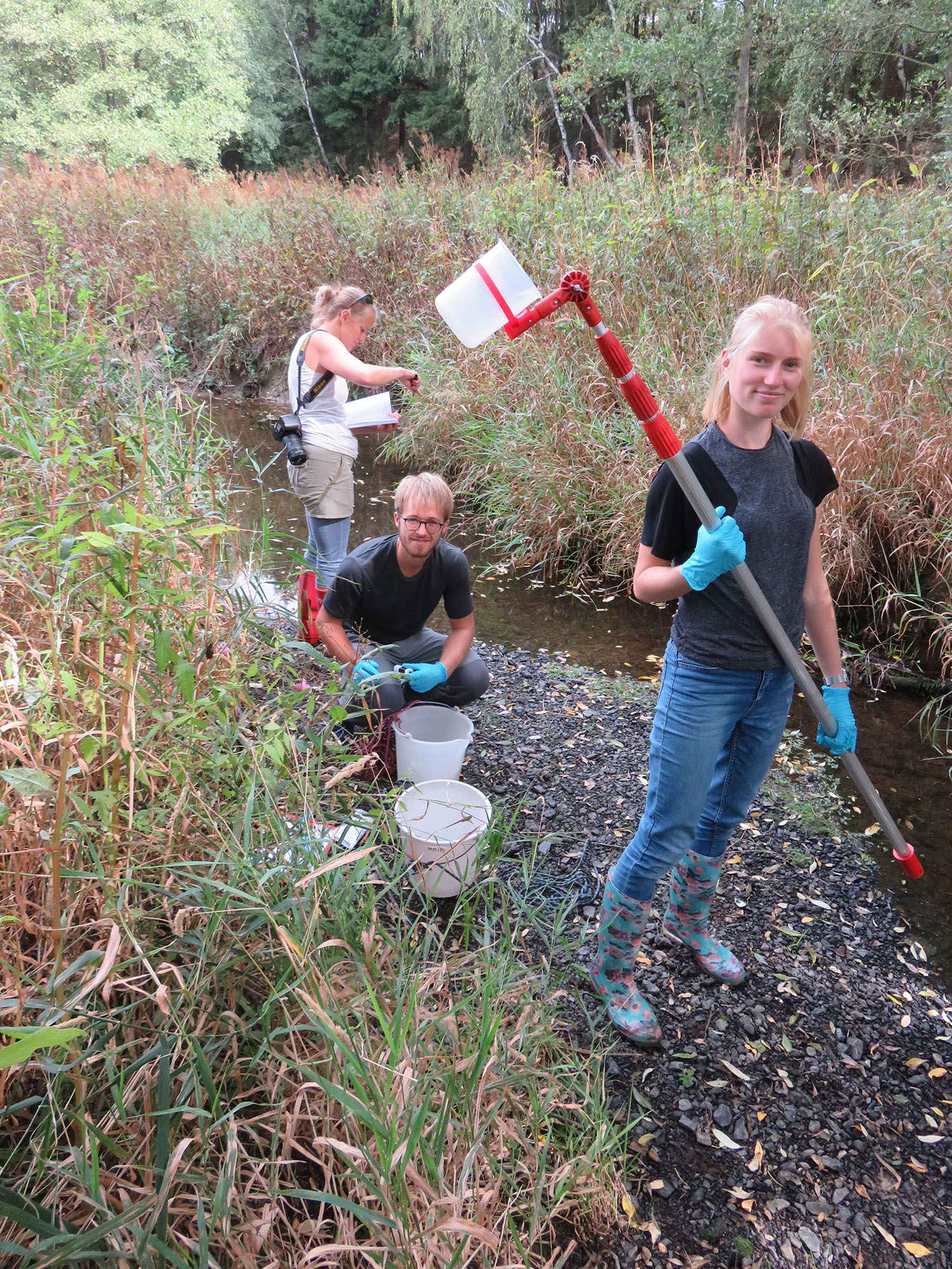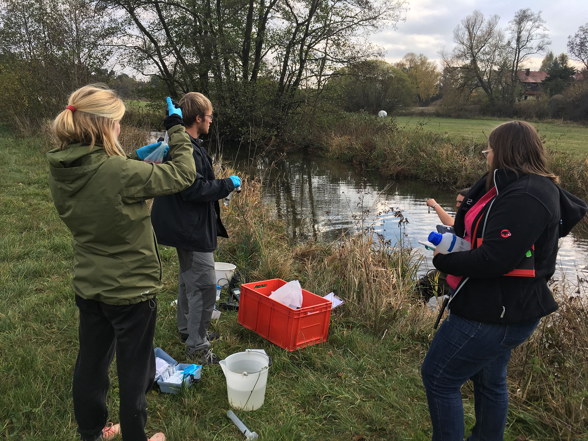 Seit Beginn des Projekts werden an drei ausgewählten Messtandorten an Bächen in zig gemeinsamen Messkampagnen Daten zu Gewässerökologie und -chemie, zu stabilen Isotopen sowie zum Grundwassereinfluss gesammelt. Die Ergebnisse aus dem Freiland sollen das Übertragen der Erkenntnisse aus den Fließrinnen auf größere Skalen unterstützen. Die Perlmuschelbäche bei Hof, die Moosach im kalkreichen Moränengebiet und die Wiesent im Karst der Fränkischen Schweiz repräsentieren hierbei relvante Fließgewässertypen im nichtalpinen Teil Bayerns. Es zeichnet sich ab, dass die Kombination aus Niedrigwasser und höherer Temperatur Verockerungsprozessen Vorschub leisten kann, mit negativen Konsequenzen für die Gewässerökologie (TP1, TP2 und TP3).
