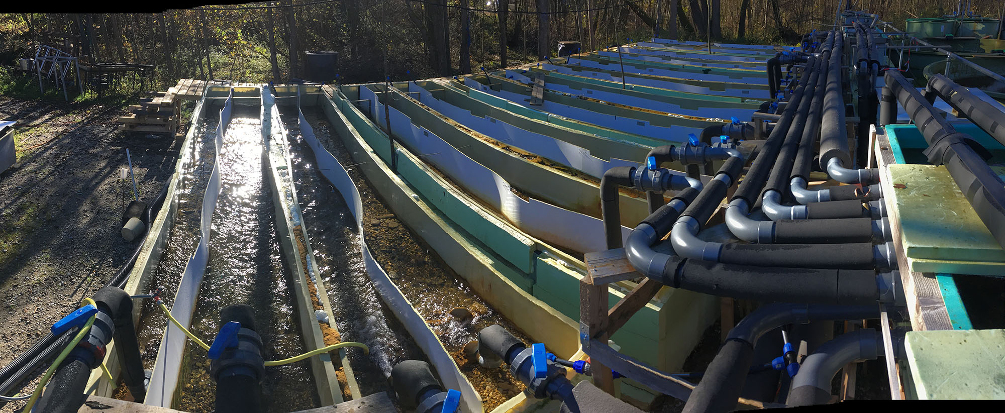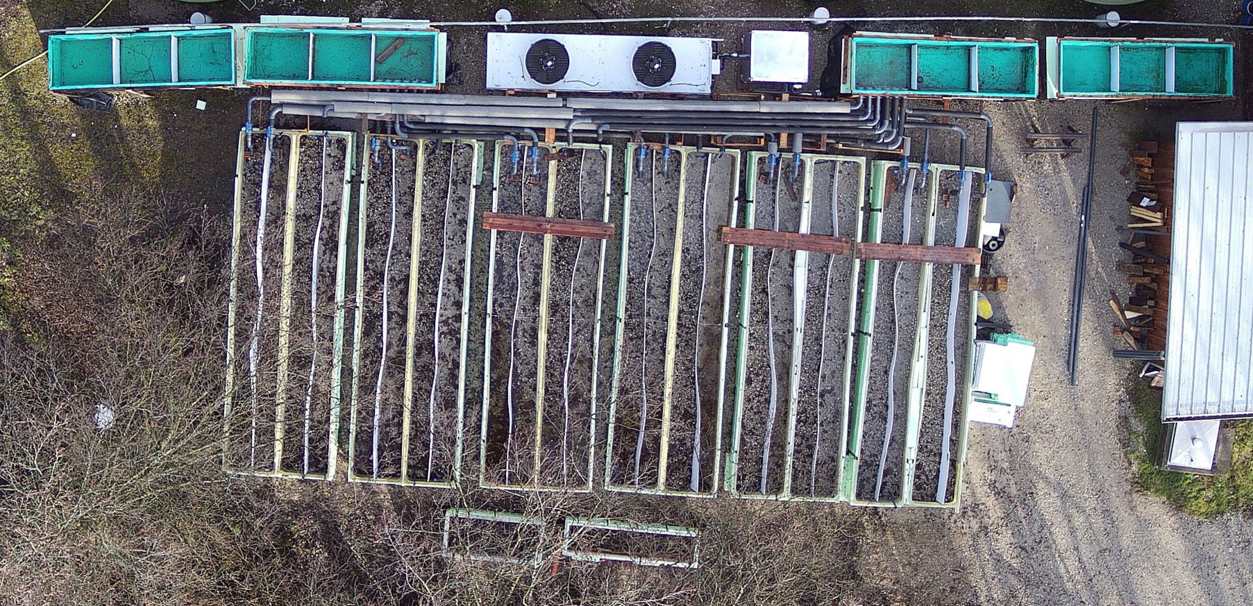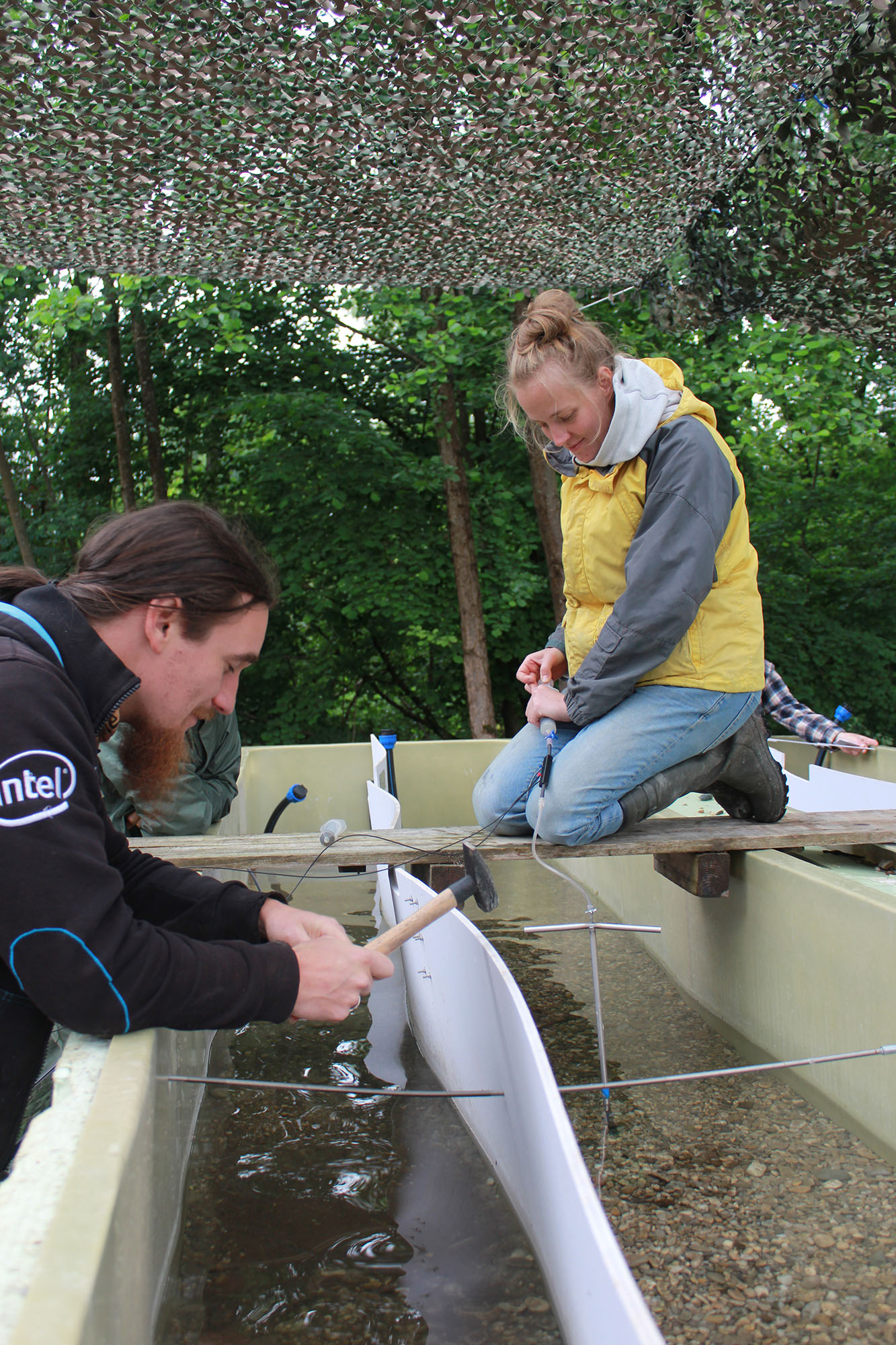 Das interdisziplinäre Fließrinnenexperiment in Freising – Kernstück für das mechanistische Verständnis verschiedener Stressoren – gestaltete sich aufwändig in Planung und Umsetzung. Seit Sommer 2020 wird hier kontrolliert und über realitätsnahe Zeiträume hinweg der Einfluss einzelner sowie kombinierter Stressoren analysiert. Ziel ist es zu verstehen, was erhöhte Temperaturen, Feinsedimenteintrag und geringere Fließgeschwindigkeiten für die Besiedelung durch Organismen und die Ei-Entwicklung von Fischen bedeuten, und wie sich dadurch biogeochemische Parameter verändern (TP1, TP2 und TP3).